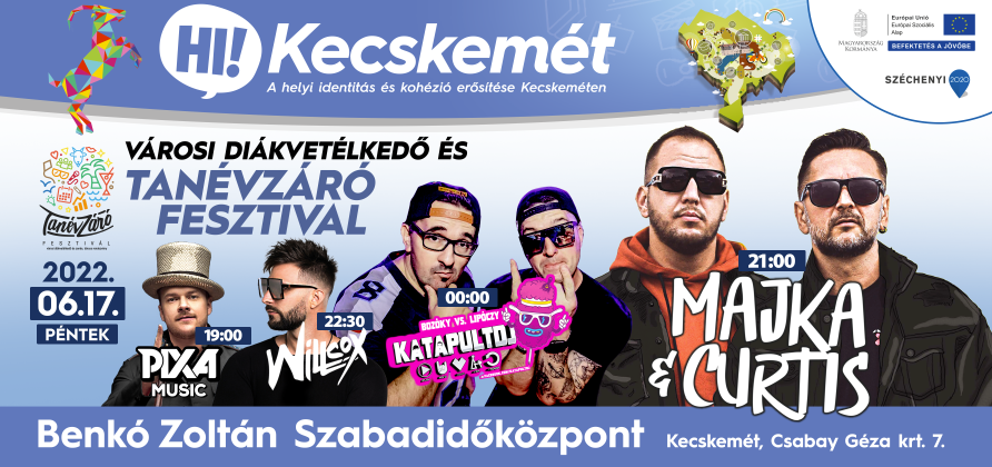 Az esti programok helyszíne a Benkó Zoltán Szabadidőközpont. (Megközelítés a Domb Beach felől és a régi Tó Hotel felől lehetséges)